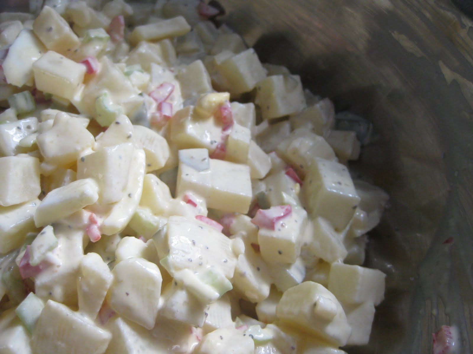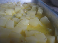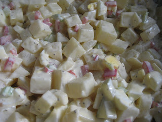 Peel and dice the apples. Heat up a large soup pan and melt butter. Once it's melted add the apples and stir well. Add the spices, sugar, water, and plumped raisins, stirring well to mix the water in. Cover & cook 5 minutes.